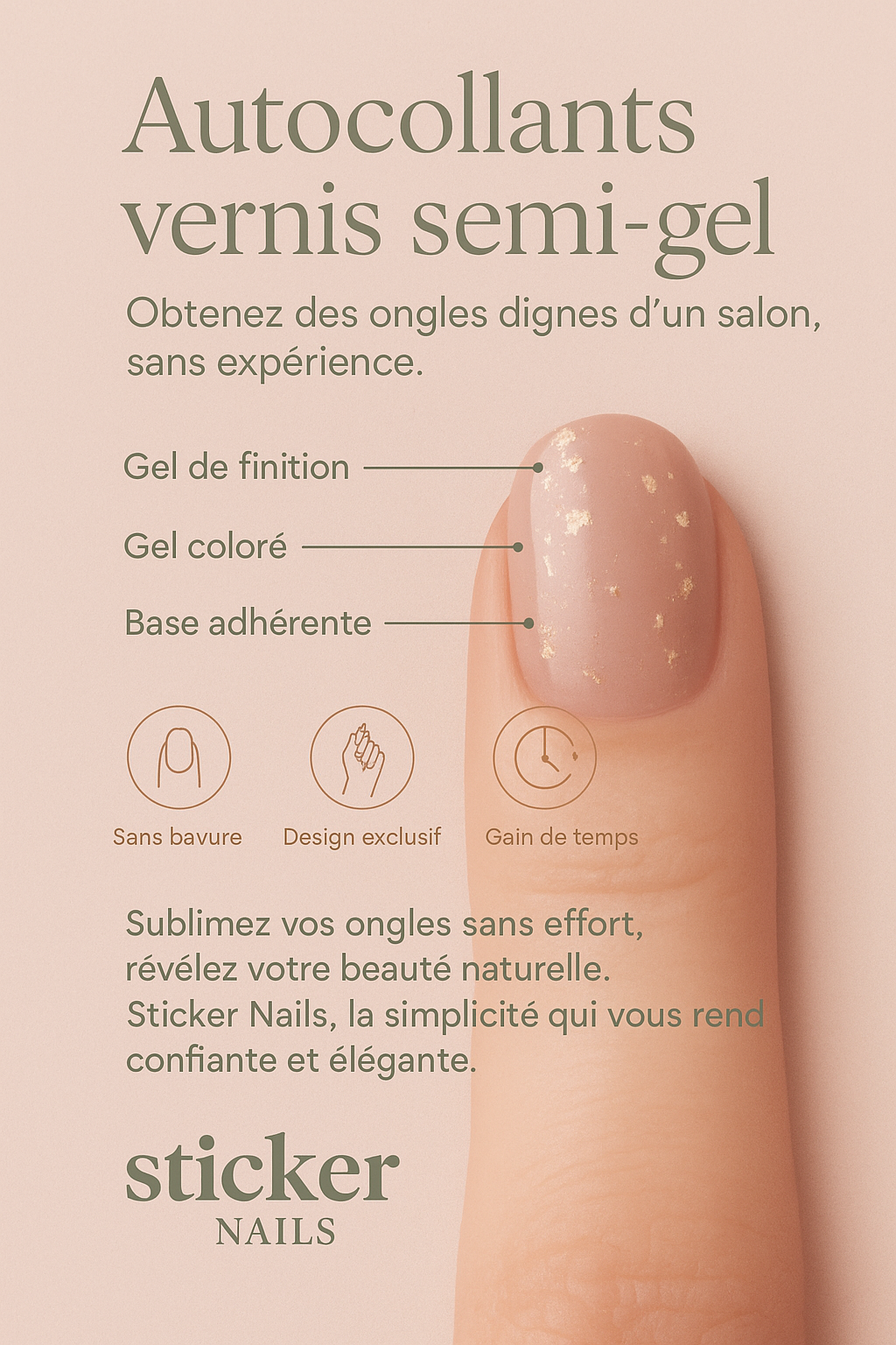 Sticker Nails, c’est une marque de beauté des ongles qui propose des autocollants vernis semi-gel faciles à poser et à durcir sous lampe UV.